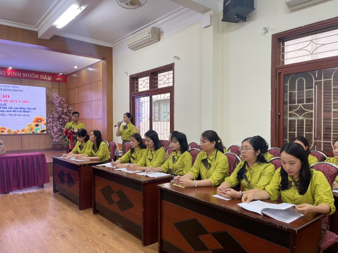 Thực hiện Kế hoạch số 21-KH/ĐU ĐQB ngày 06/5/2022 của Đảng ủy phường Đồng Quốc Bình về việc quán triệt, tổ chức thực hiện các quy trình nâng cao chất lượng sinh hoạt chi bộ ở các tổ chức cơ sở đảng trực thuộc năm 2022. Chiều 31/3/2023, Chi bộ tiến hành sinh hoạt chuyên đề với nội dung: “Xây dựng, rèn luyện phong cách làm việc của đảng viên chi bộ theo tư tưởng, đạo đức, phong cách Hồ Chí Minh”.