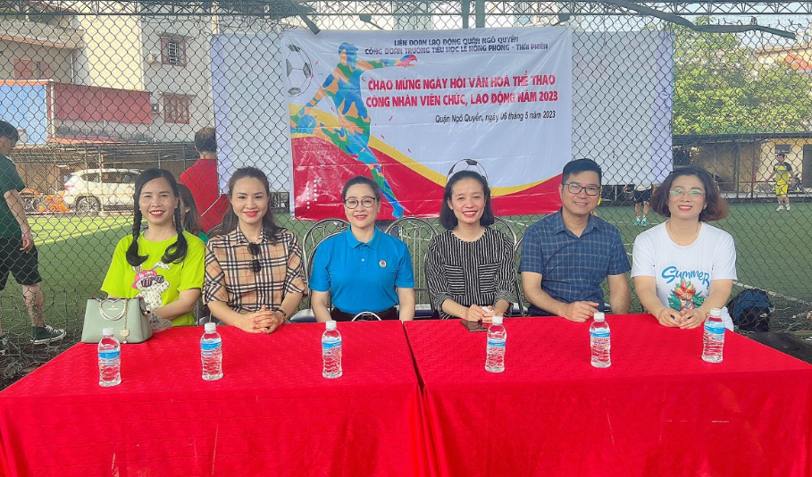 Tới dự và động viên với buổi Giao lưu có bà Nguyễn Thị Kim Thoa - Phó Chủ tịch Liên đoàn Lao động quận Ngô quyền; bà Lê Thị Thùy Trang - Chủ tịch Hội đồng Đội, Bí thư Quận đoàn Ngô Quyền cùng các đ/c Ban Giám hiệu 2 trường Tiểu học Lê Hồng Phong và Tiểu học Thái Phiên, sự quan tâm cổ vũ các bậc phụ huynh trong Ban Chi hội Phụ Huynh nhà trường và 100% đoàn viên Chi đoàn Trường Tiểu học Lê Hồng Phong, đặc biệt là sự góp mặt của các cầu thủ không chuyên của cả 2 trường.