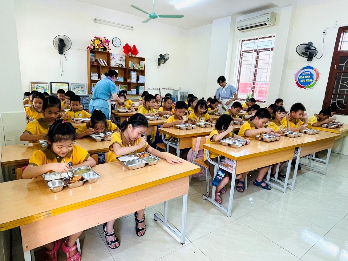 Thực hiện chia suất ăn cho học sinh