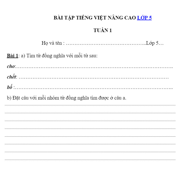 BÀI TẬP TIẾNG VIỆT NÂNG CAO LỚP 5