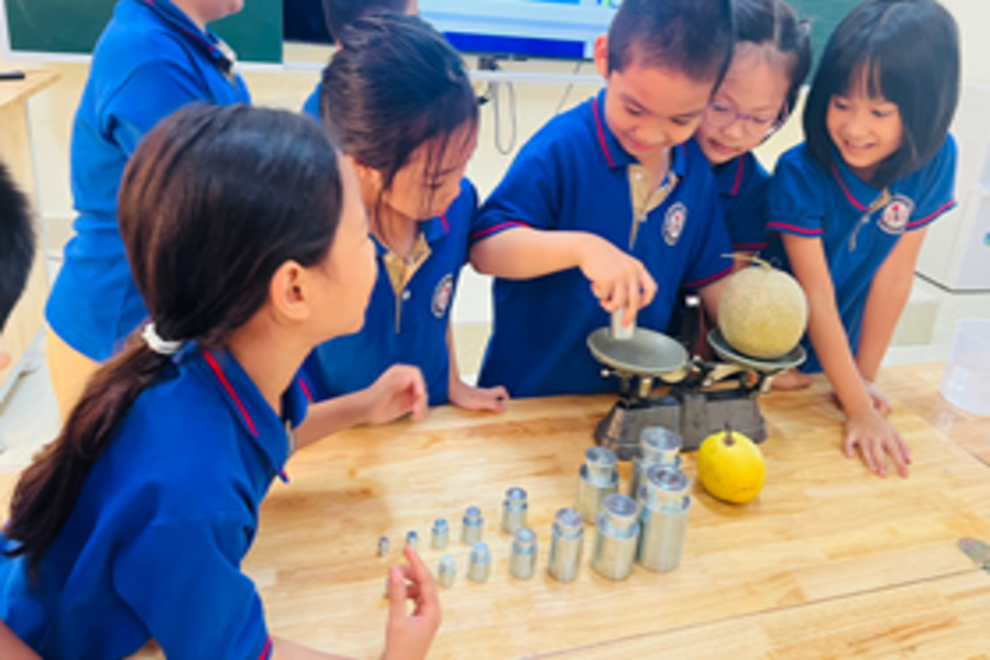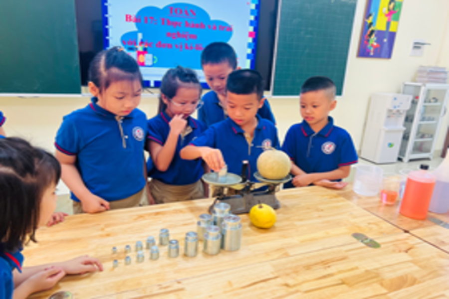 các em học sinh thông qua tiết thực hành cân, đong. Bên cạnh đó, giáo viên cũng