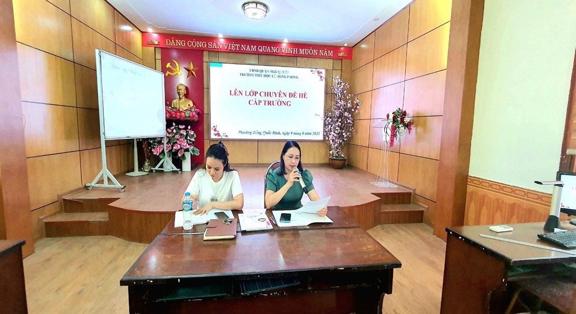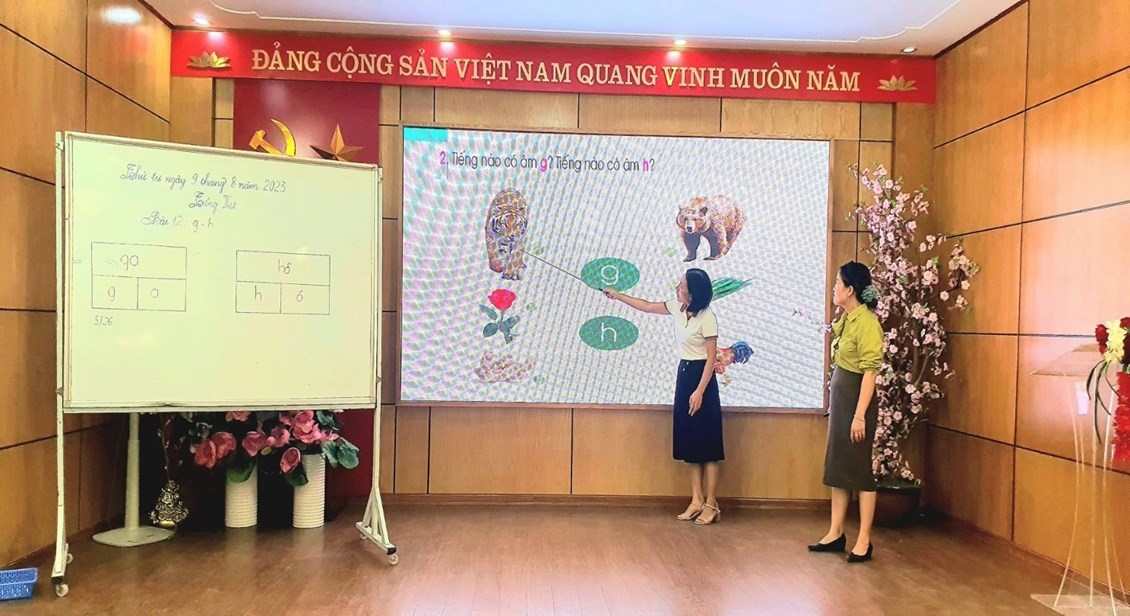 Thực hiện nhiệm vụ năm học 2023 - 2024, sáng 09/8/2023, giáo viên lớp 1 Trường Tiểu học Lê Hồng Phong lên lớp chuyên đề môn Toán và môn Tiếng Việt theo định hướng phát triển năng lực và phẩm chất học sinh.