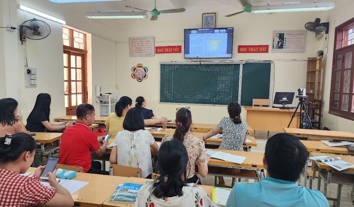 Ngay từ trước ngày tập huấn chính thức, bộ phận kĩ thuật nhà trường đã chuẩn bị đầy đủ trang thiết bị, test đường truyền theo lịch của Sở GD&ĐT, bố trí phòng và lên lịch tập huấn cụ thể với từng môn học... Trong những ngày tập huấn chính thức, để đảm bảo đường truyền hình ảnh và âm thanh tốt, tại điểm cầu, nhà trường đã có mặt sớm và đăng nhập vào hệ thống trước 15 phút đảm bảo lĩnh hội nội dung tập huấn đầy đủ và cập nhật. Với 8 tiếng một ngày làm việc nghiêm túc, BGH và giáo viên tham dự đã được trao đổi, thảo luận, tương tác với báo cáo viên và giao lưu, chia sẻ thông tin với các trường bạn.
