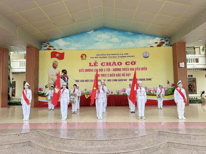 ngày 6 tháng 4, Liên đội đã tổ chức buổi chào cờ đầu tháng trang nghiêm, ý