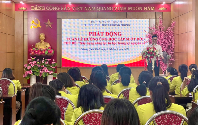 ngày 29/9/2023, tại Hội trường trường Tiểu học Lê Hồng Phong, đ/c Nguyễn Xuân Đức - Phó Bí thư Chi bộ - Phó Hiệu trưởng nhà trường đã