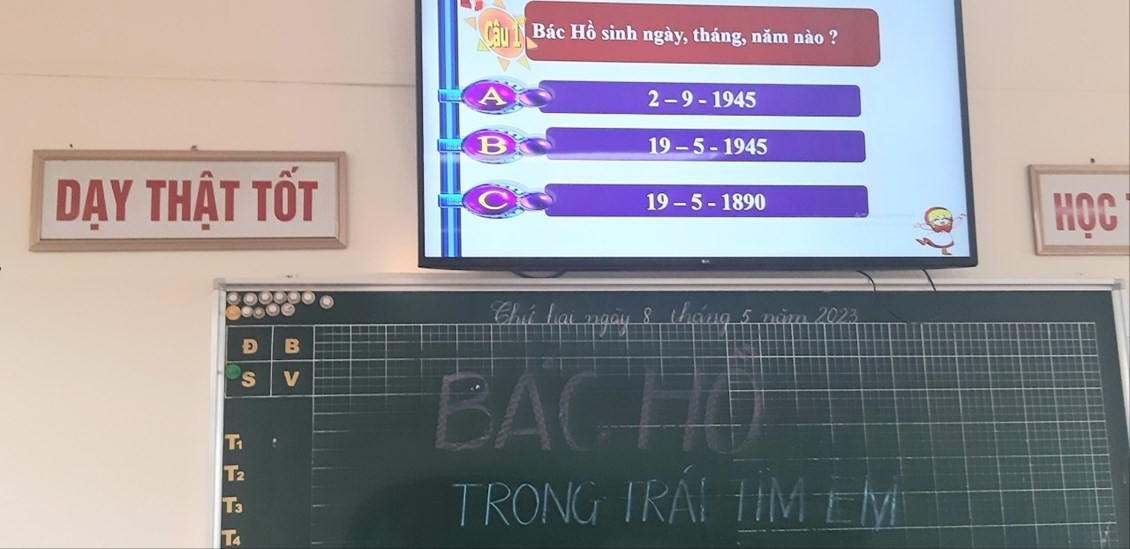Nhằm giúp các em có thêm hiểu biết về cuộc đời và sự nghiệp của Bác, cô giáo đã tổ chức cuộc thi “ Bác Hồ trong trái tim em” được các bạn học sinh háo hức tham gia. Cuộc thi gồm các phần: Sưu tầm sách báo, câu chuyện, bài hát về Bác; Vẽ tranh; … Sôi nổi và được học sinh nhiệt tình tham gia đó là trò chơi Rung chuông vàng. Tiếng reo hò mỗi lần tìm được đáp án đúng như làm nóng thêm bầu không khí tháng 5.