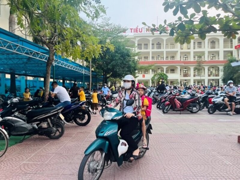 đón con đúng thời gian quy định, đỗ xe theo đúng làn đã được kẻ sẵn trên sân