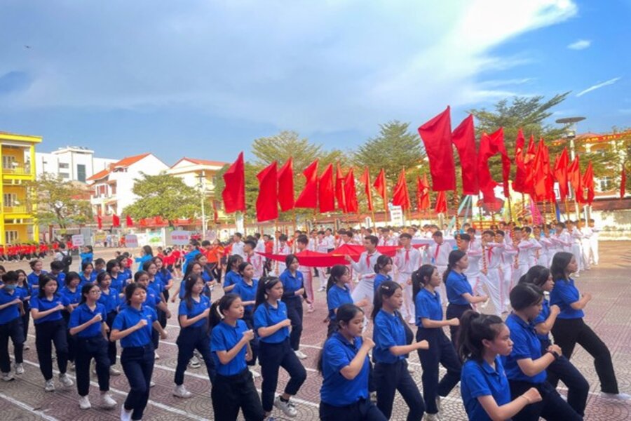 đồng diễn của các bạn học sinh đến từ các trường trong quận.