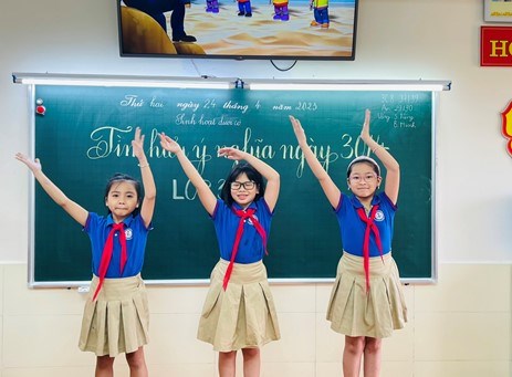 Ngoài ra, học sinh lớp 3C8 còn được trải nghiệm không khí tưng bừng, phấn khởi của nhân dân trong ngày Giải phóng miền Nam 30/4/1975 thống nhất đất nước qua hoạt động văn nghệ. Cô trò cùng nhau biểu diễn và hát vang các bài ca cách mạng đã đi cùng năm tháng thông qua những giai điệu hào hùng của các bài hát: Đất nước trọn niềm vui, Tiếng hát từ thành phố mang tên Người, Huế Sài Gòn Hà Nội và cùng múa hát bài: Em yêu chú bộ đội.