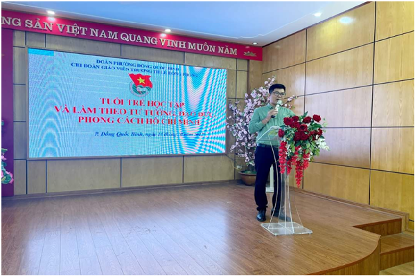Cùng với các tổ chức, cá nhân nhà tường, Chi đoàn trường Tiểu học Lê Hồng Phong đã tổ chức Lễ phát động tuyên truyền và đông viên thanh niên tích cực tham gia cuộc thi với 02 hình thức là thi viết và thi trực tuyến một cách tích cực và nghiêm túc. Đến dự chương trình, có đồng chí Nguyễn Xuân Đức - Phó Bí thư Chi bộ - Phó hiệu trưởng nhà trường và 100% các đồng chí Đoàn viên chi đoàn.