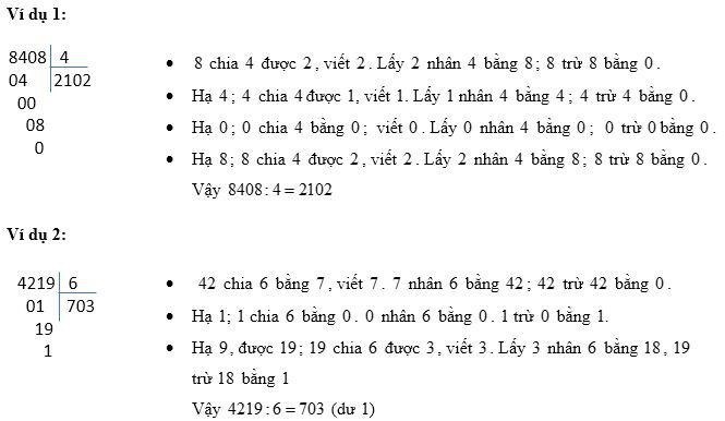 Bước 2 : Bắt đầu thực hiện phép chia từ trái sang phải như 2, 3 chữ số chia cho 1 chữ số