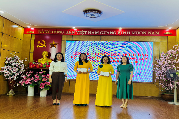 Để kịp thời động viên các đồng chí giáo viên thực hiện lên lớp của buổi lên lớp chuyên đề, BGH nhà trường trao tặng món quà nhỏ ch 02 cô giáo lên lớp.