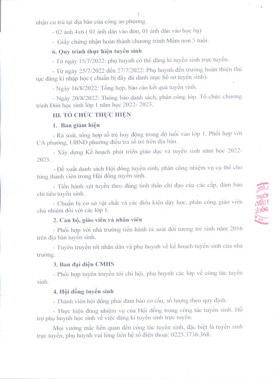 Thông tin về kế hoạc hoạt động giáo dục của năm học
